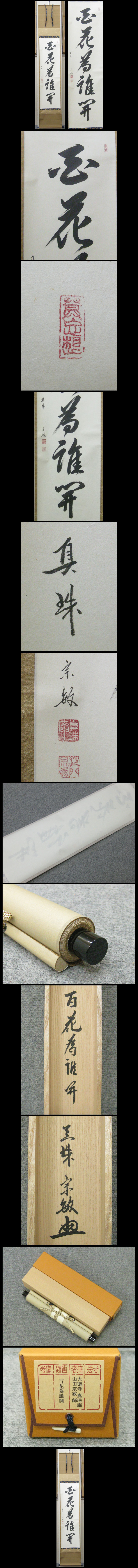 【心庵】掛軸 山田宗敏 大徳寺 真珠庵 紙本 一行書「百花為誰開」/肉筆 共箱 真作 B723 收藏
