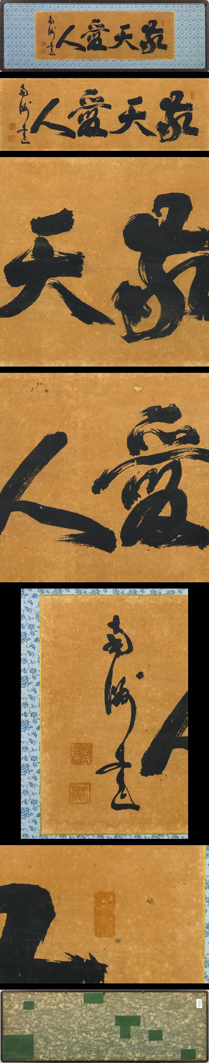 【真作】【WISH】西郷南洲(隆盛)「敬天愛人」書 30号大 大作 横書一行書 〇維新の元勲 討幕派指導者 西南戦争発起人 #26012502 收藏