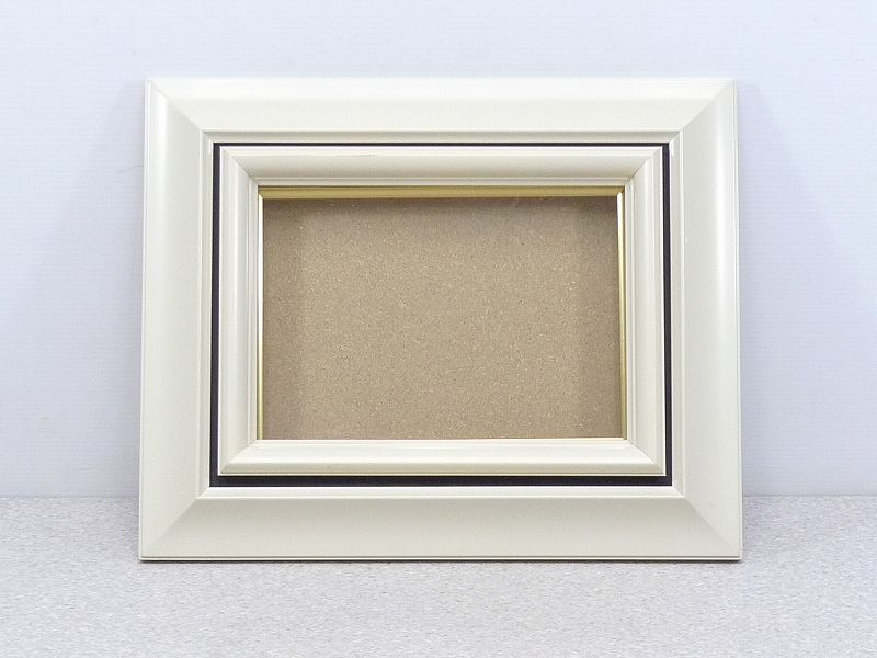 80GS37▲額縁 油絵額 外寸約37×30cm 空額 箱付 木製枠 ガラス面 アイボリー ブラック 油彩画 油絵 板絵 絵画 美術 收藏