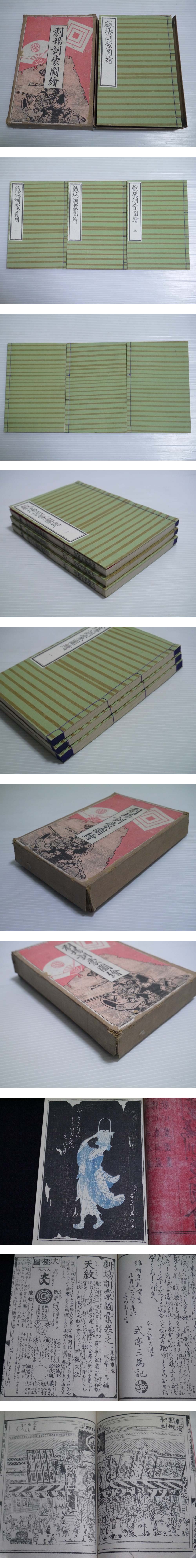 江戸期(文化)古書「劇場訓蒙図絵」3冊揃い 箱入り(商品説明内に詳細画像あり)古本 幽霊 骸骨 挿絵 レトロ アンティーク 戦前 歴史 資料 收藏