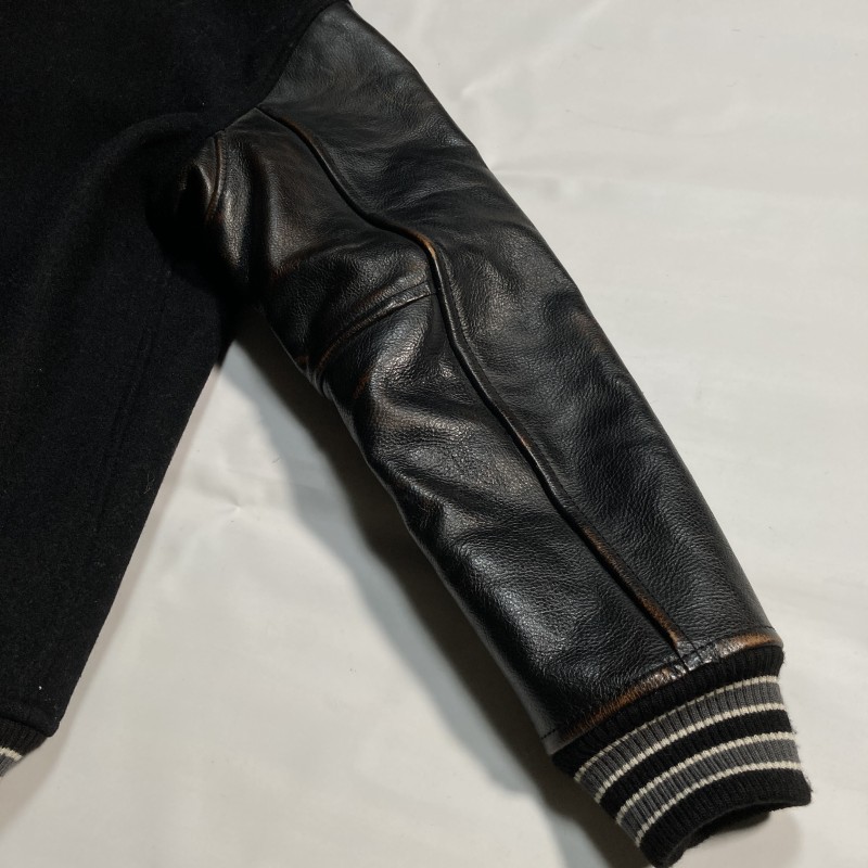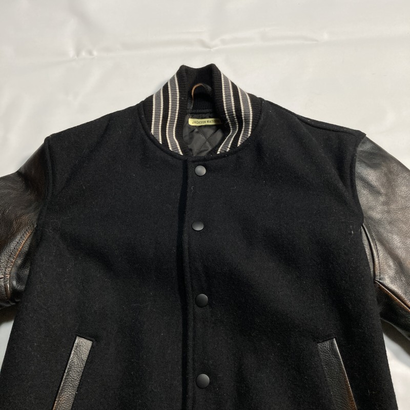 JACKSON MATISSE★名作★茶芯レザー袖 ヴィンテージ加工スタジャン 裏キルティング 本革 黒 レディース 小柄メンズも◎ ジャクソンマティス 收藏