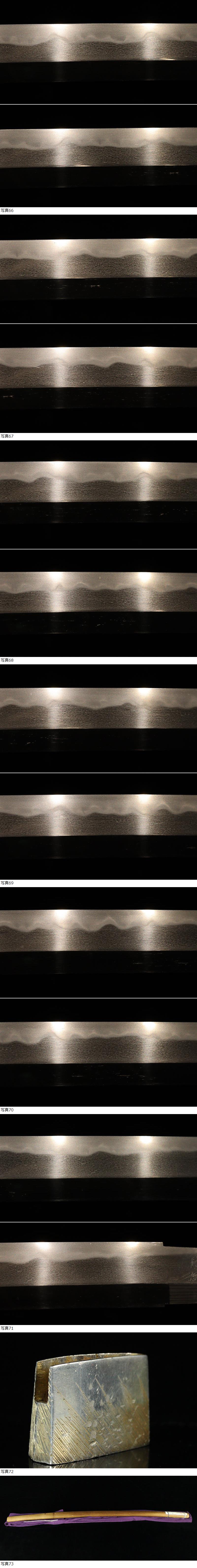 | ■刀剣のサイズ表示について 元幅・・・焼出し付近を測定しております 先幅・・・横手筋付近を測定しております 元重ね・・・焼出し付近の厚みを測定しております 先重ね・・・横手付近の厚みを測定しております (多少の誤差はご容赦ねがいます) ■銃砲類のサイズ表示について 全長・・・銃身先から台木尻までを測定しております 銃身・・・台木を除いて金属部分を測定しております (多少の誤差はご容赦ねがいます) 当社が出品する刀剣類は、入手した時の状態のまま出品しております。 ハバキ、小道具等も当社で調整したり付け替えたりはしておりませんので、合わせではないかというクレームは一切受け付けません。 刀身の疵も隠すことなく載せておりますので写真をよくご覧になってご入札ください。 疵に関して、説明がない等のクレームは一切受け付けません。 写真ではわかりにくい部分は質問欄やお電話でお問い合わせください。 但し、説明欄に表記のない刃切れに関してのみ返品やご相談に応じます。 ※ご落札しご購入されお手元に届いてから20日以内に 登録証に記載されている各都道府県の教育委員会にご連絡し 登録証の所有者変更を必ず行ってください | |||