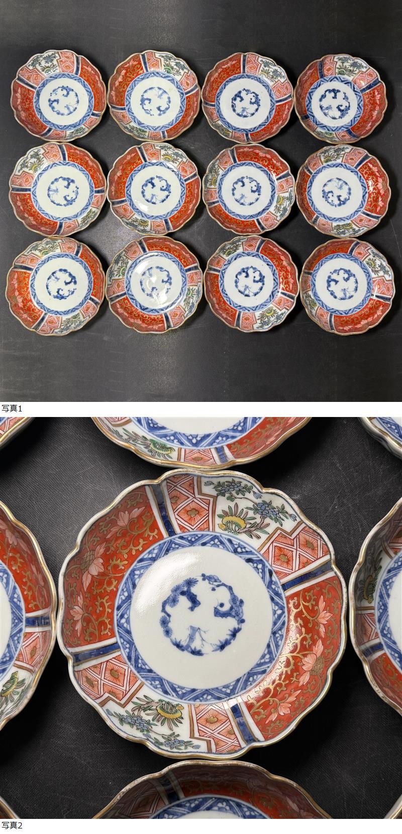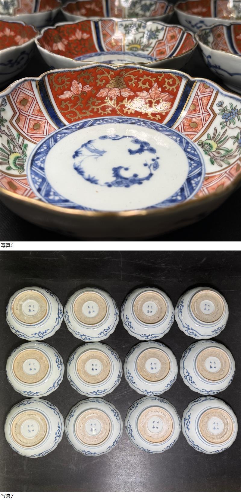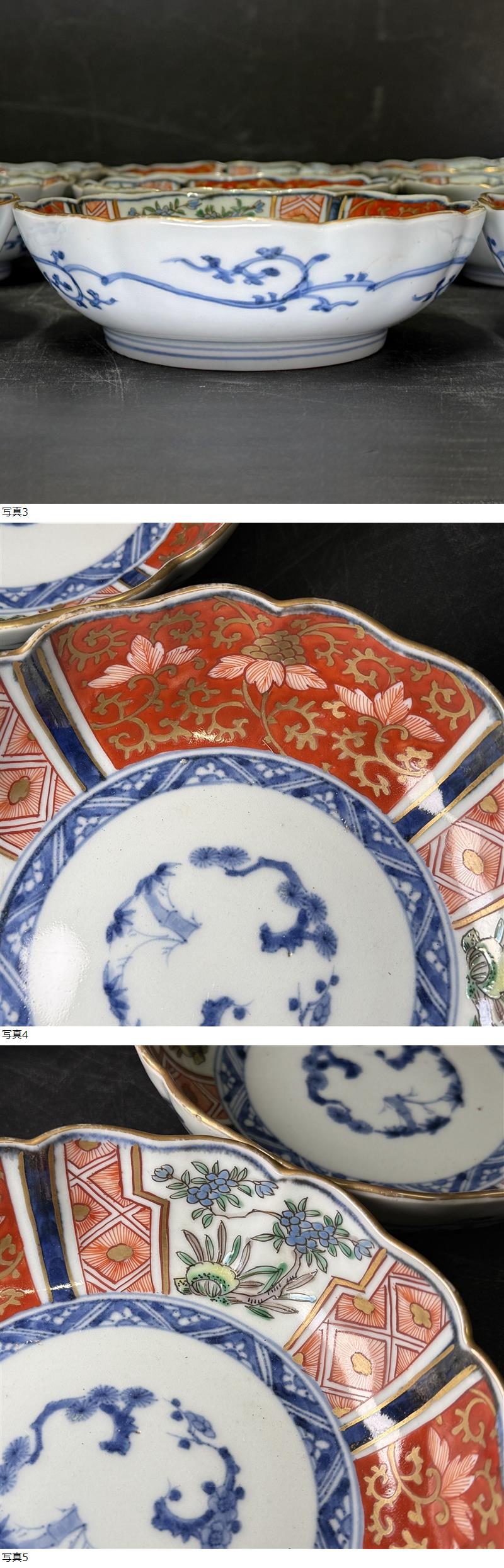 011 時代物 古伊万里 錦手 膾皿 大明年製 蛇目高台 9客無傷 直径15cm 検索:(江戸期 蕎麦皿 木箱 南京 花唐草文) 收藏