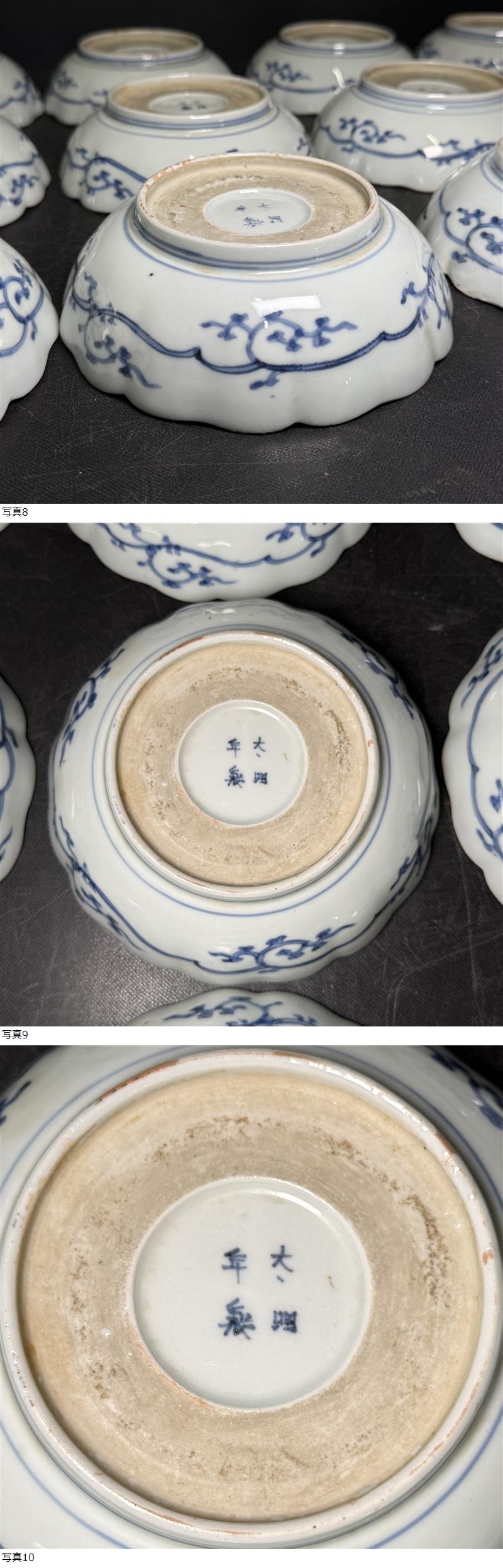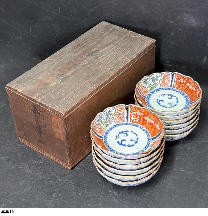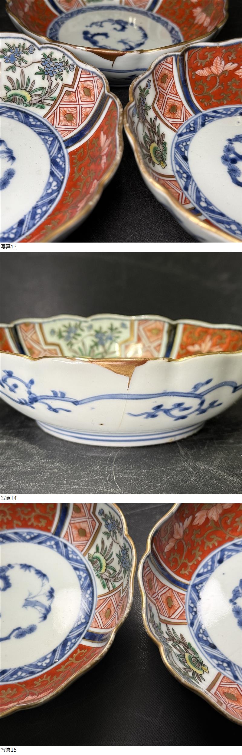 011 時代物 古伊万里 錦手 膾皿 大明年製 蛇目高台 9客無傷 直径15cm 検索:(江戸期 蕎麦皿 木箱 南京 花唐草文) 收藏