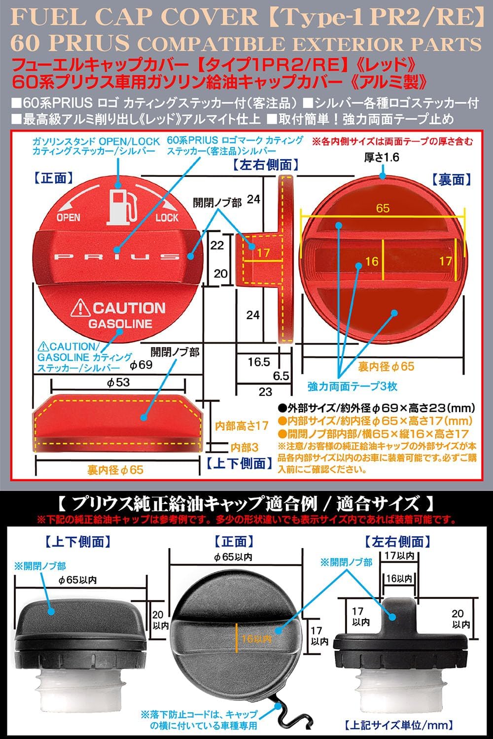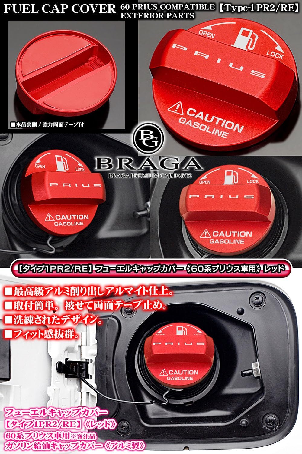 [タイプ1PR2/RE]60系 プリウス車用 PRIUS ステッカー付/給油フューエル キャップ カバー/レッド/アルミ製/両面テープ止/ブラガ BG BRAGA 收藏