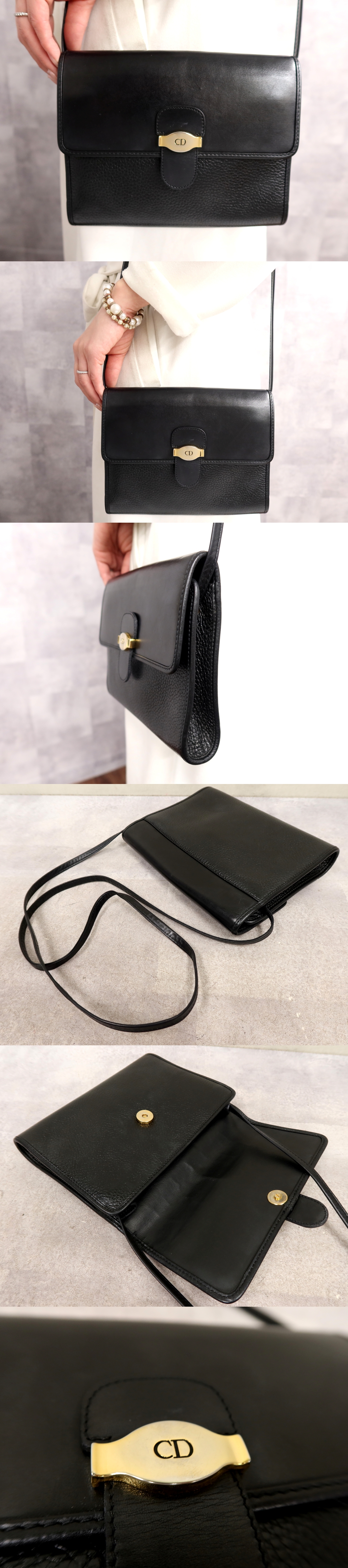 ●超美品●Christian Dior クリスチャン・ディオール●カーフ レザー 本革●ショルダー バッグ●黒●ゴールド金具●ヴィンテージ●Js65304 收藏
