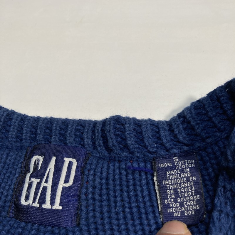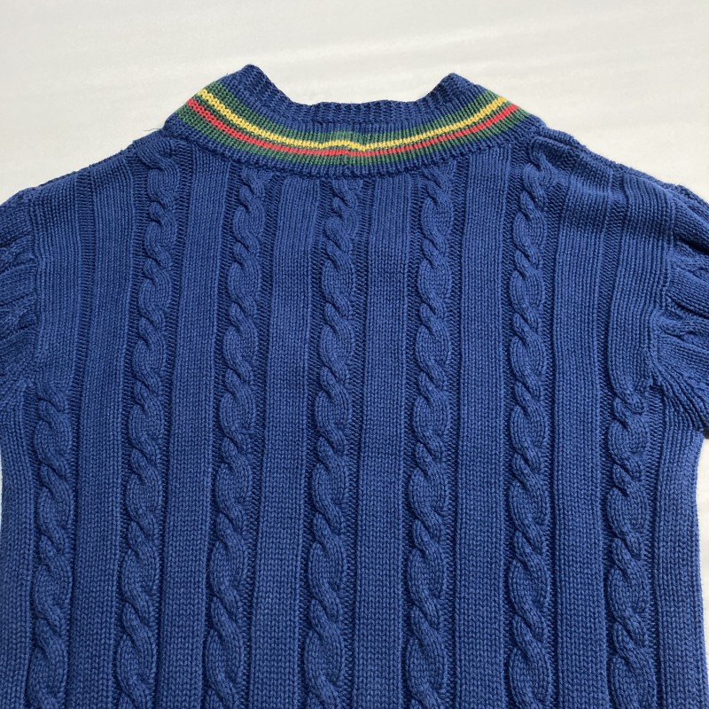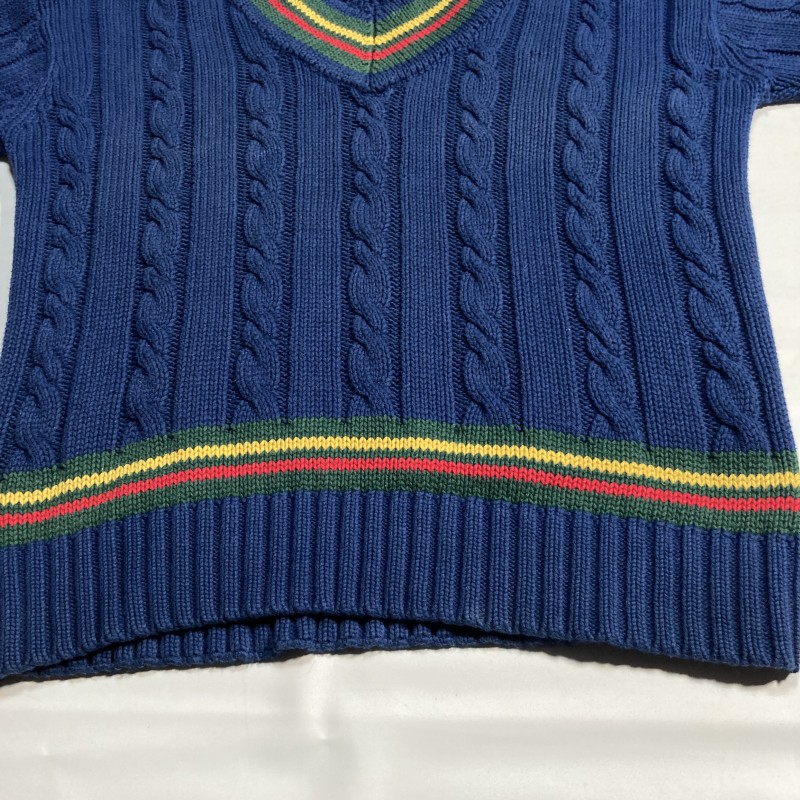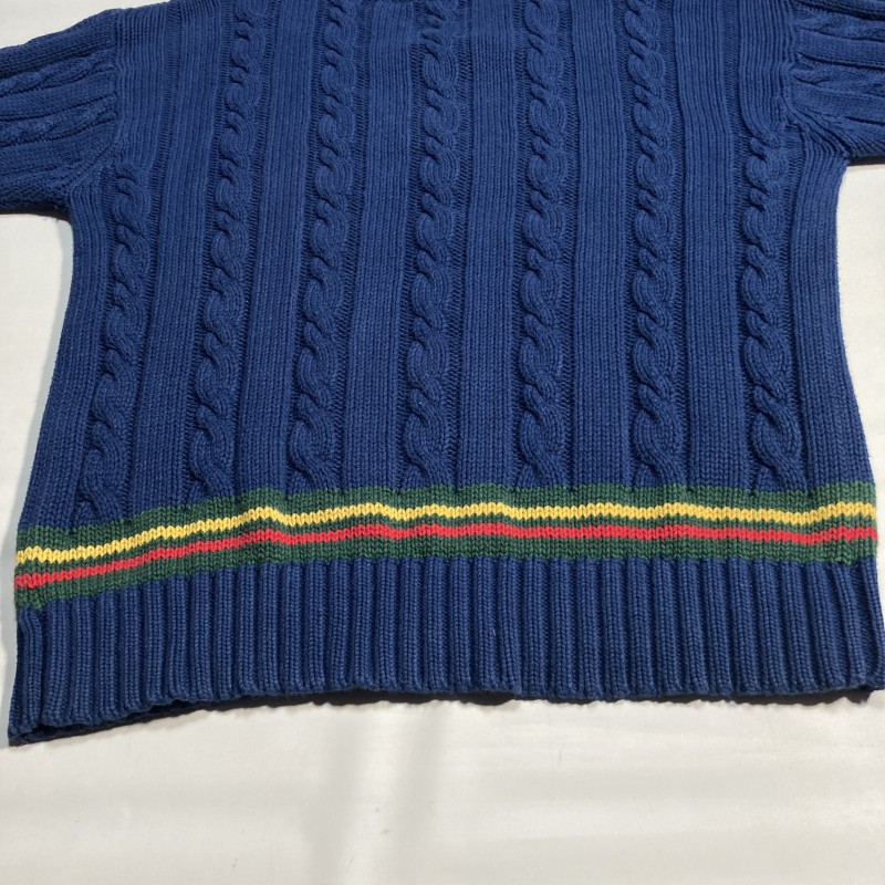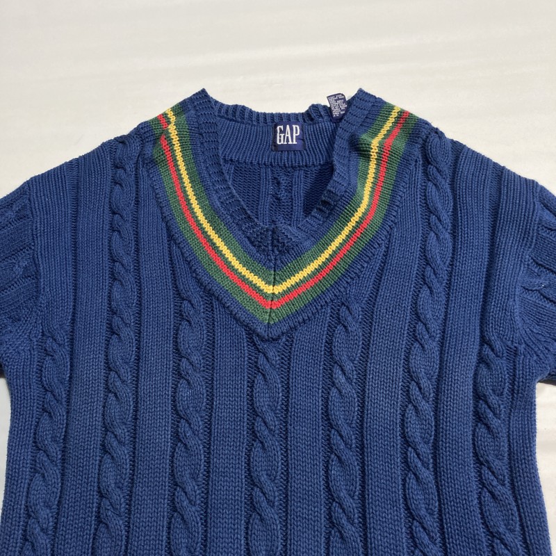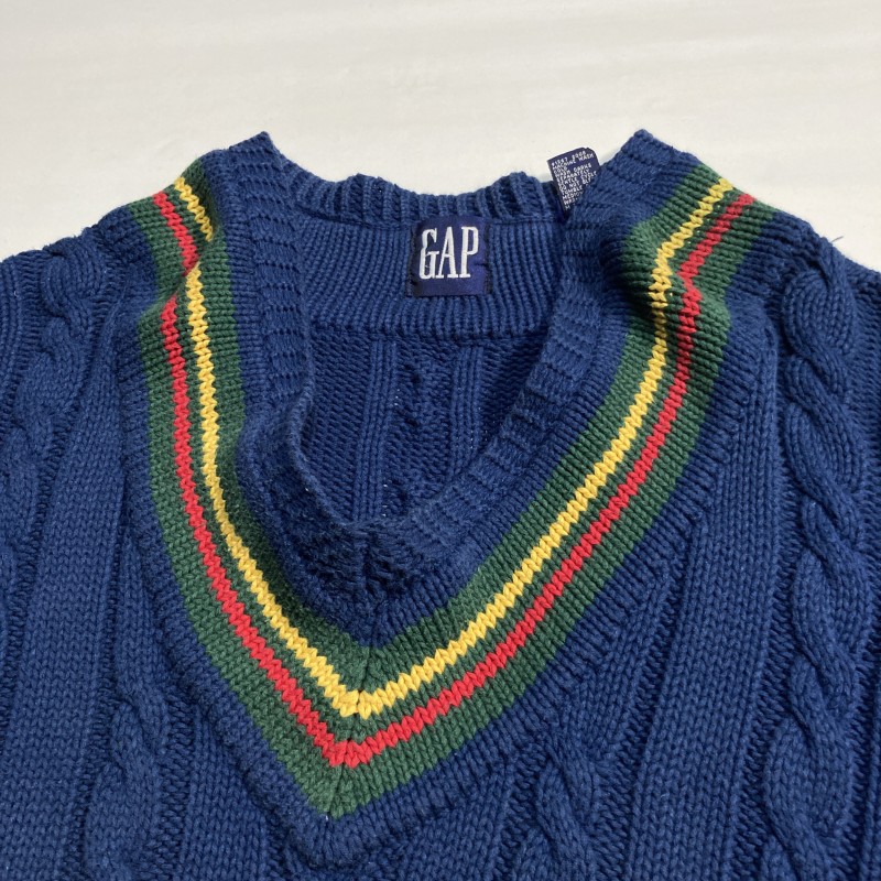 OLD GAP★90s archive★チルデン ニットセーター ケーブル 3色ライン 紺 着用感メンズL~XL位 ギャップ Y2Kヴィンテージ アイビー アメトラ 收藏