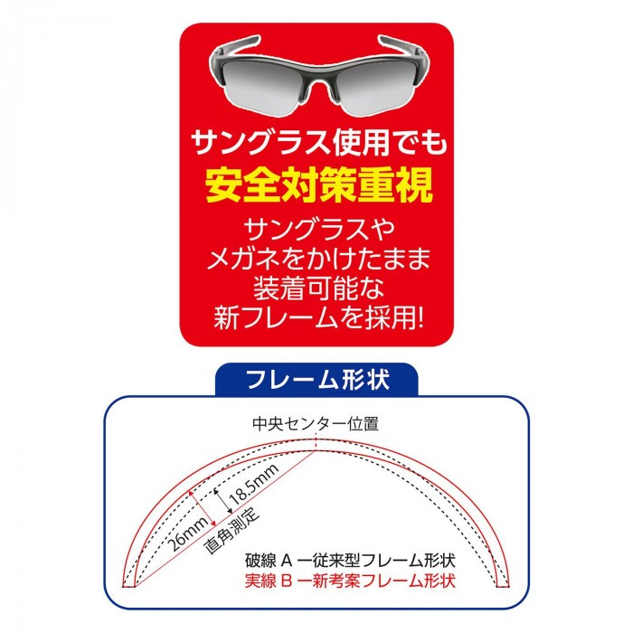 | サングラスやメガネをかけたままでも装着できます。広い視野でジャッジすることが可能になります。 楽チンパッド付 |