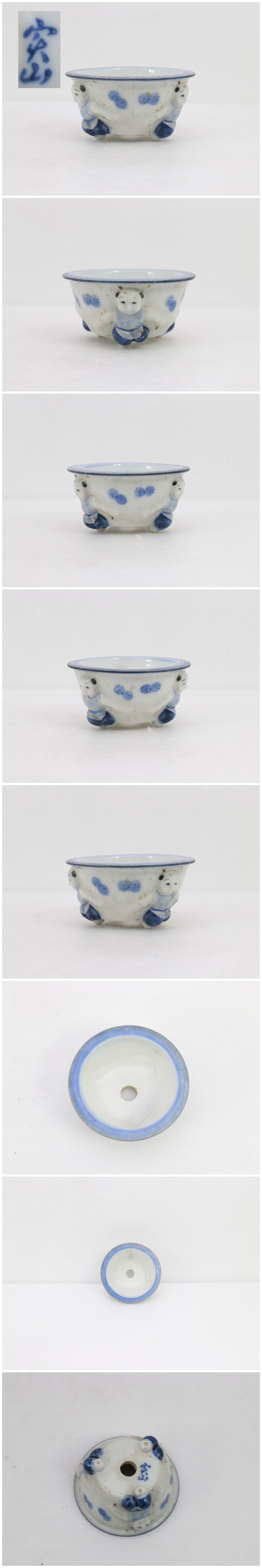 260169 「収集家のコレクター」時代物 実山 作 三足 円形鉢 人物 鉢 小品 盆栽 和鉢 豆鉢 收藏