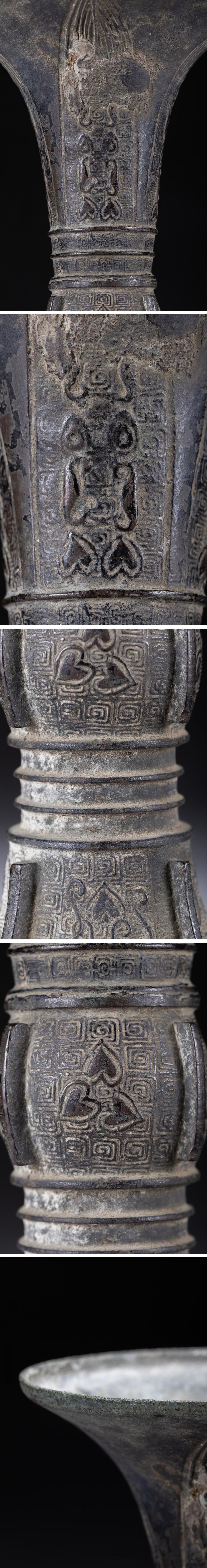 【華】某収集家放出品 明時代 唐銅 獣面紋花觚 共箱 当時物保証 古美術 骨董品A25090140-RQ 收藏