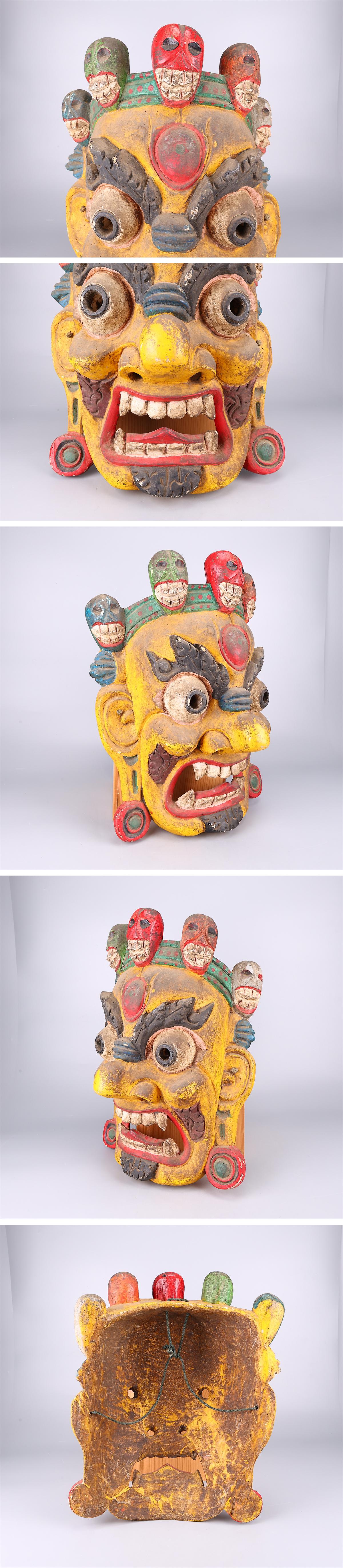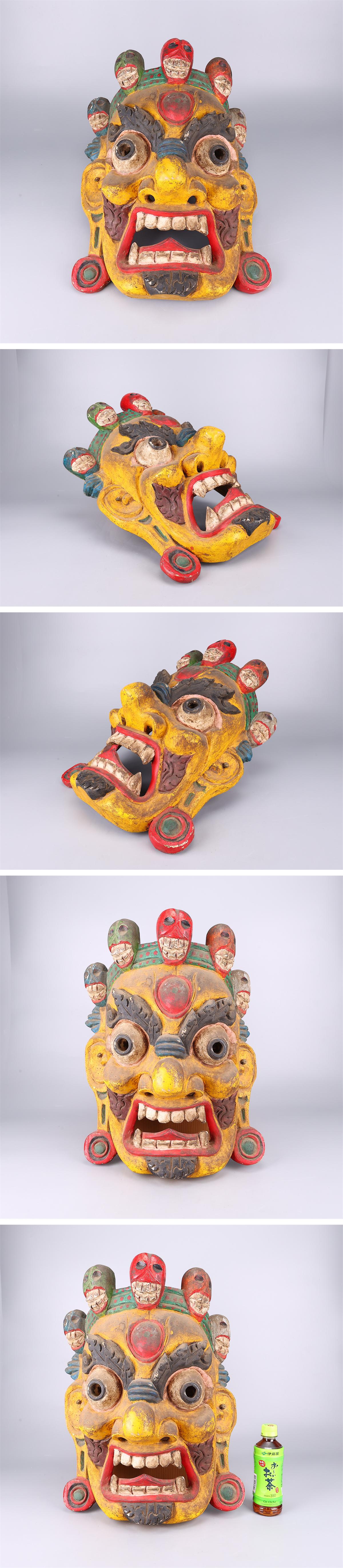 【吉】MC142 東洋彫刻 仏教美術 マハーカーラ 破壊神 木彫 お面 壁掛け シヴァ神 ヒンドゥー教 チベット仏教 護法善神 收藏
