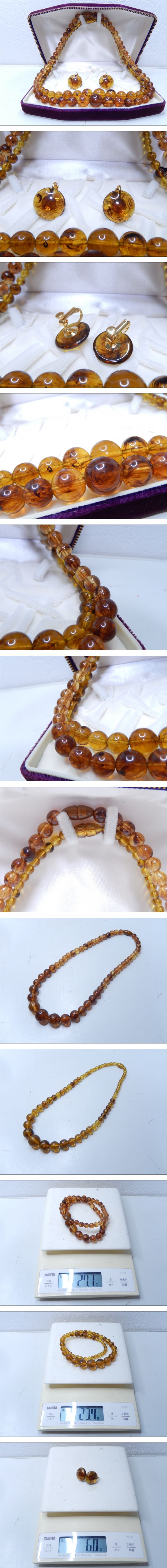 | 【管KA1160】10000円~ 美品 天然琥珀 コハク アンバー 大玉 ネックレス イヤリングセット amber necklace | ||