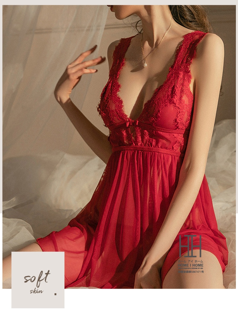 F レッド 超セクシー ランジェリー ベビードール レディース 過激 誘惑 シースルー 透け感 キャミソール Tバック 2点セット 收藏