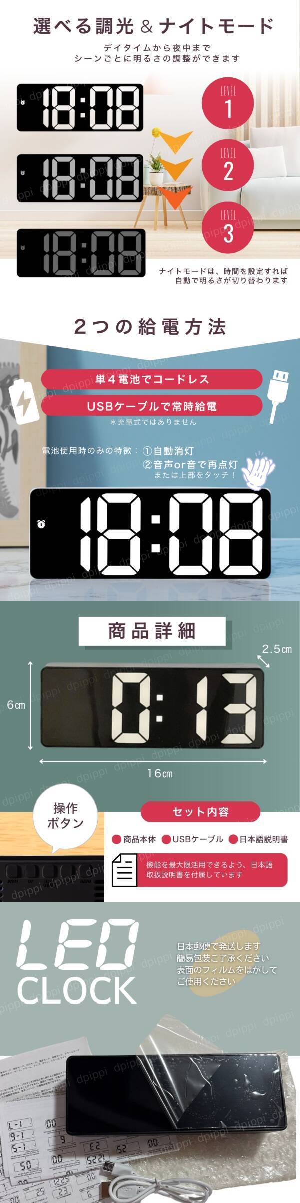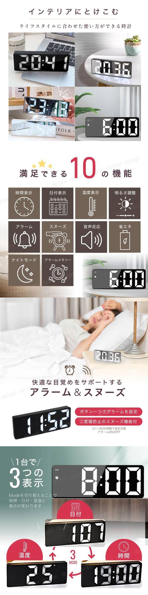 LED デジタル 置き時計 目覚まし時計 多機能 卓上時計 置時計 温度計 カレンダー 日付 アラーム スヌーズ USB 電池 省エネ 日本語説明書 黒 收藏