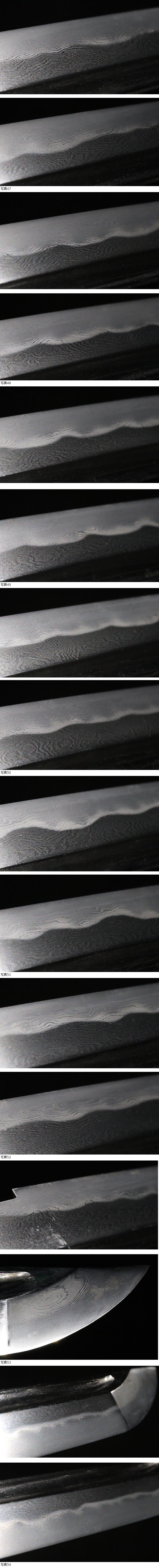 | ■刀剣のサイズ表示について 元幅・・・焼出し付近を測定しております 先幅・・・横手筋付近を測定しております 元重ね・・・焼出し付近の厚みを測定しております 先重ね・・・横手付近の厚みを測定しております (多少の誤差はご容赦ねがいます) ■銃砲類のサイズ表示について 全長・・・銃身先から台木尻までを測定しております 銃身・・・台木を除いて金属部分を測定しております (多少の誤差はご容赦ねがいます) 当社が出品する刀剣類は、入手した時の状態のまま出品しております。 ハバキ、小道具等も当社で調整したり付け替えたりはしておりませんので、合わせではないかというクレームは一切受け付けません。 刀身の疵も隠すことなく載せておりますので写真をよくご覧になってご入札ください。 疵に関して、説明がない等のクレームは一切受け付けません。 写真ではわかりにくい部分は質問欄やお電話でお問い合わせください。 但し、説明欄に表記のない刃切れに関してのみ返品やご相談に応じます。 ※ご落札しご購入されお手元に届いてから20日以内に 登録証に記載されている各都道府県の教育委員会にご連絡し 登録証の所有者変更を必ず行ってください | |||