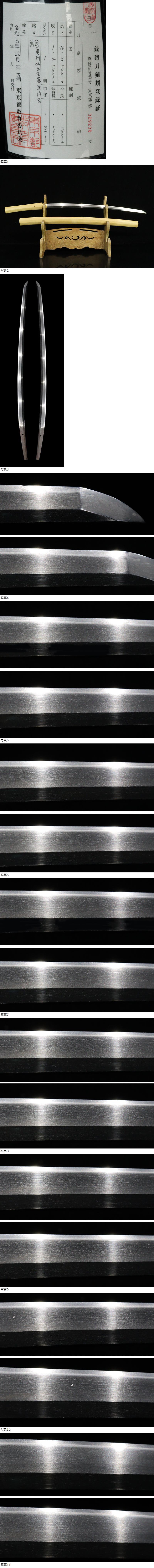 | ■刀剣のサイズ表示について 元幅・・・焼出し付近を測定しております 先幅・・・横手筋付近を測定しております 元重ね・・・焼出し付近の厚みを測定しております 先重ね・・・横手付近の厚みを測定しております (多少の誤差はご容赦ねがいます) ■銃砲類のサイズ表示について 全長・・・銃身先から台木尻までを測定しております 銃身・・・台木を除いて金属部分を測定しております (多少の誤差はご容赦ねがいます) 当社が出品する刀剣類は、入手した時の状態のまま出品しております。 ハバキ、小道具等も当社で調整したり付け替えたりはしておりませんので、合わせではないかというクレームは一切受け付けません。 刀身の疵も隠すことなく載せておりますので写真をよくご覧になってご入札ください。 疵に関して、説明がない等のクレームは一切受け付けません。 写真ではわかりにくい部分は質問欄やお電話でお問い合わせください。 但し、説明欄に表記のない刃切れに関してのみ返品やご相談に応じます。 ※ご落札しご購入されお手元に届いてから20日以内に 登録証に記載されている各都道府県の教育委員会にご連絡し 登録証の所有者変更を必ず行ってください | |||