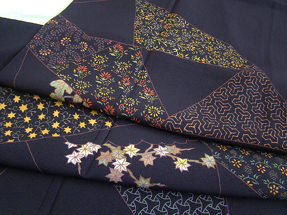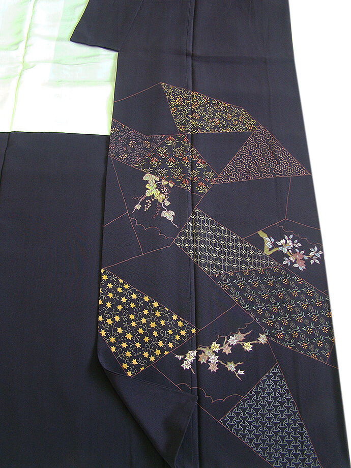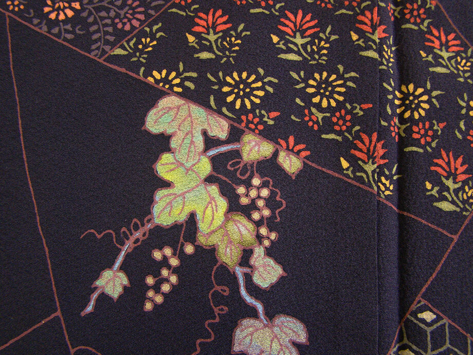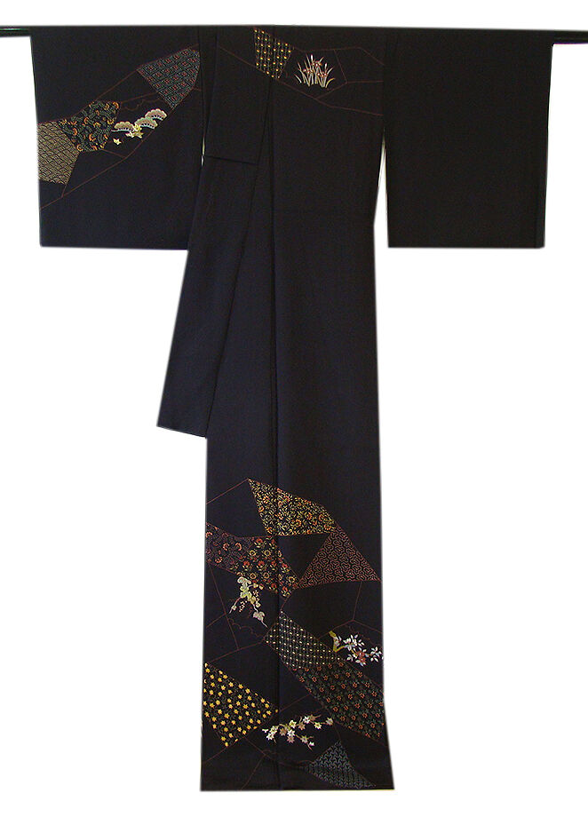 | 商品説明 | こちらのお品は「袷」ですので10月から5月までお召頂ければと思います。 とてもしなやかで柔らかな手触りの着心地良い重めの上質な極上ちりめん地の生地、 渋い黒紅色地にキリバミ調に花草、青海波等の染柄、 八掛は共布に柄入り(正絹)、幅広い年代の方にお召頂けます。 ※モデルさんの帯・小物はイメージ画像で販売は着物単品のみになります。 |