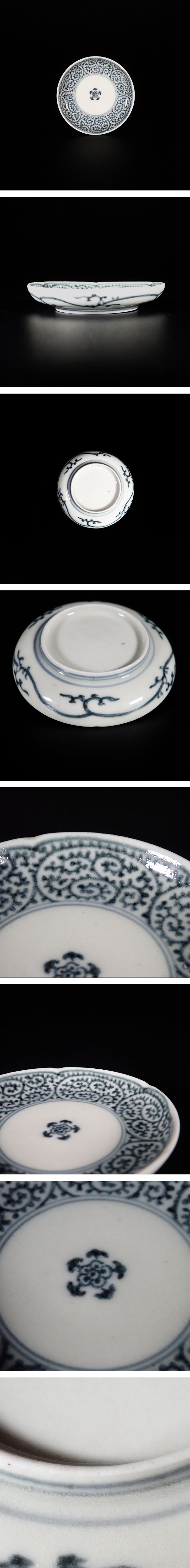 古伊万里 染付 蛸唐草文 輪花 豆皿 江戸後期 1800年頃 和食器 飾皿 インテリア (本物保証) 收藏