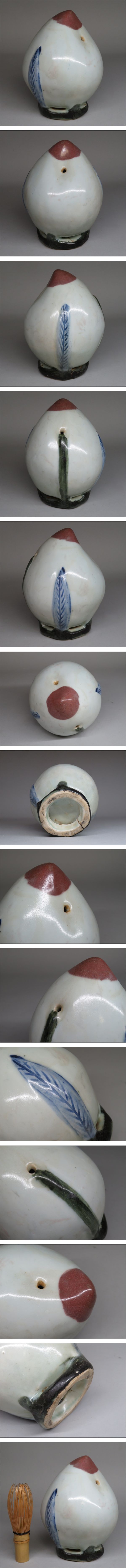 | 【李朝/高麗 特集出品】李朝 染付辰砂桃文水滴 朝鮮古陶磁器/李朝時代 朝鮮美術 | ||