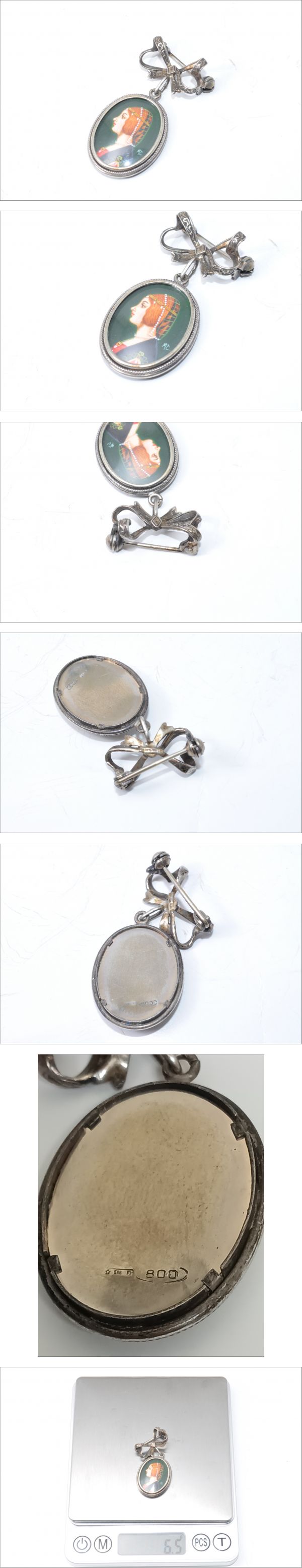 【最高級/MCサイン】 800シルバー 手描きミニアチュール ブローチ ペンダント 2WAY 貴婦人肖像 細密画 繊細金工 アンティーク 【No.106】 の出品です!