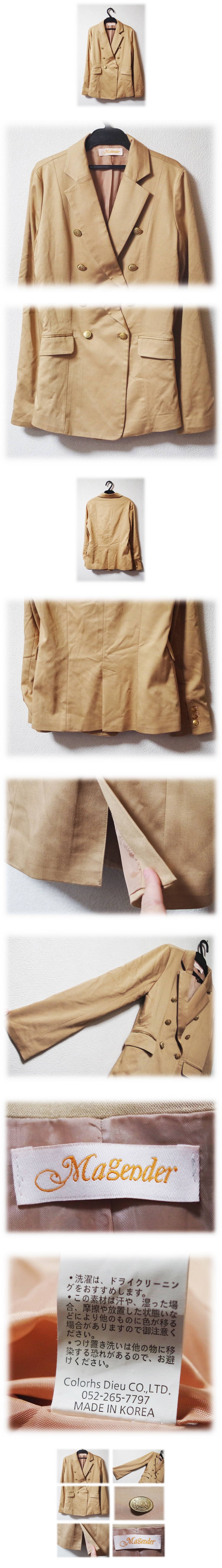 Magender マジェンダ 上品 大人 ジャケット ベージュ系 人気 美品 激安 シンプル OL 送料無料 テーラードジャケット ゴールドボタン 收藏