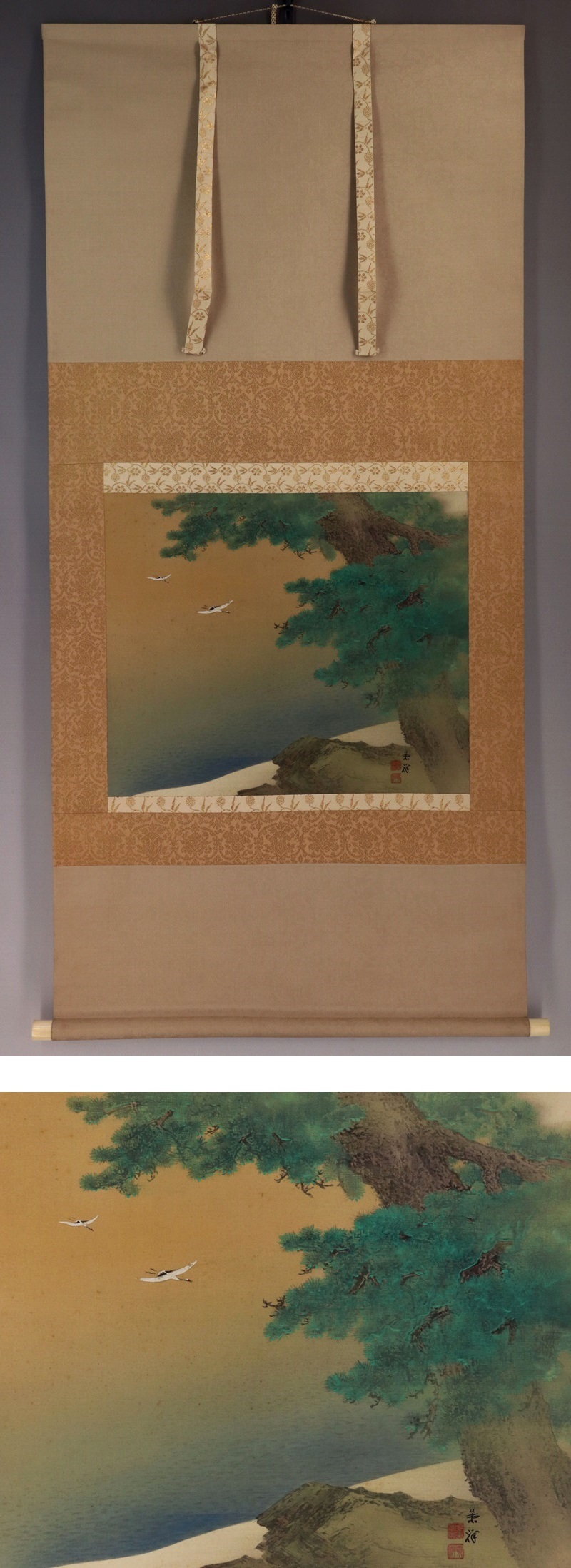 | №2110046 名品【真作】今尾景祥【仙島松鶴図】◆絹本◆共箱◆二重箱◆掛軸 | |
