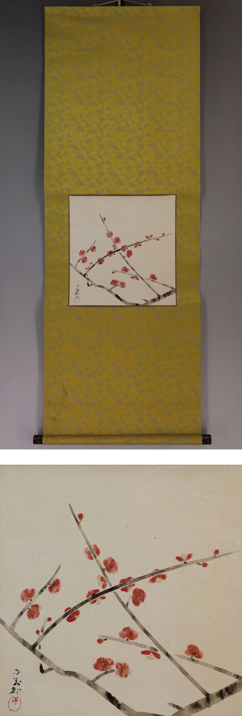 | №2111285【真作】中島多茂都【紅梅】◆紙本◆共箱◆掛軸 | |