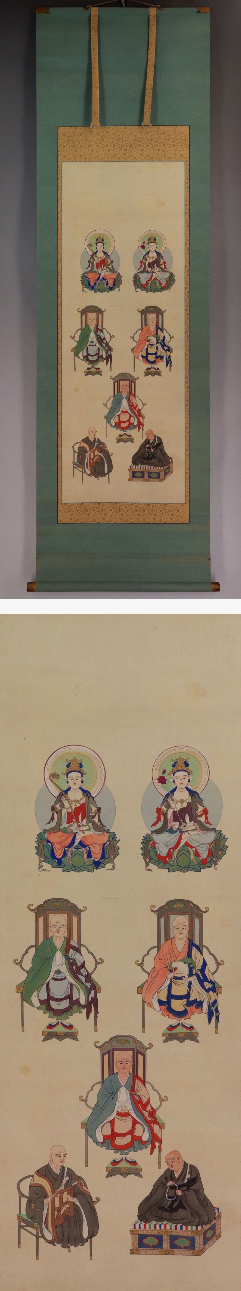 | №2109219【肉筆】仏画【三国七高僧御影】◆絹本◆識箱◆掛軸 | |