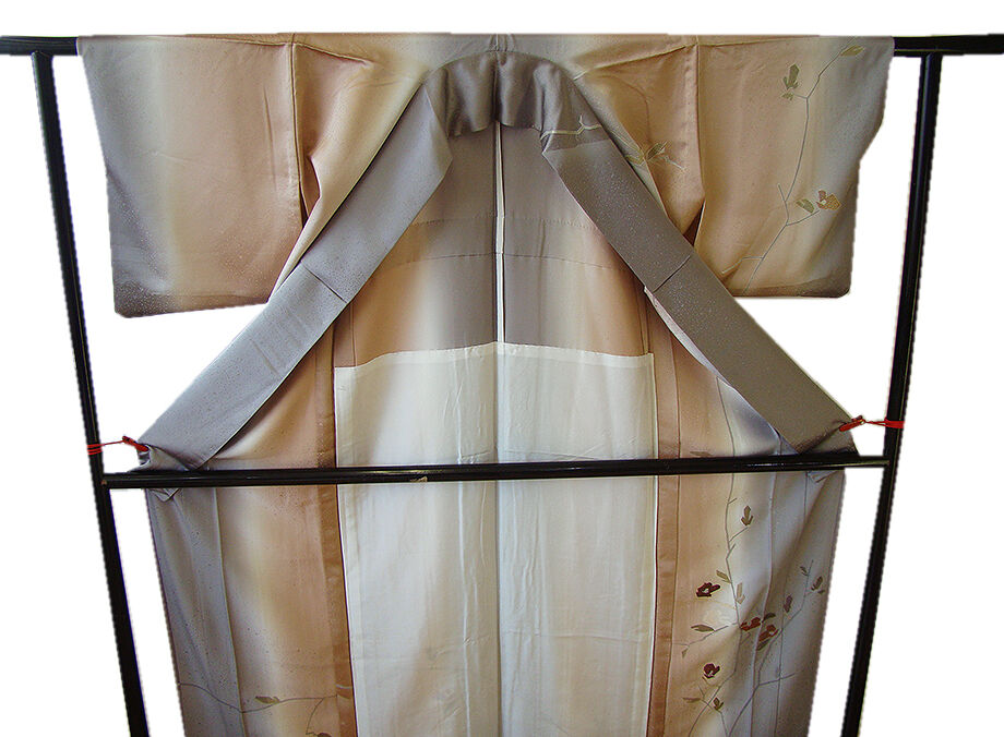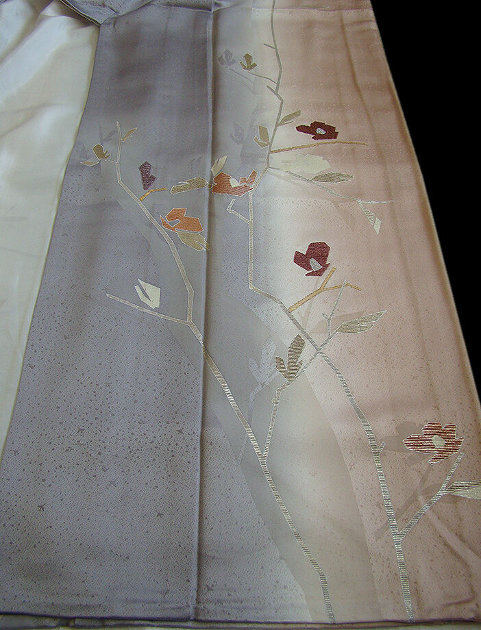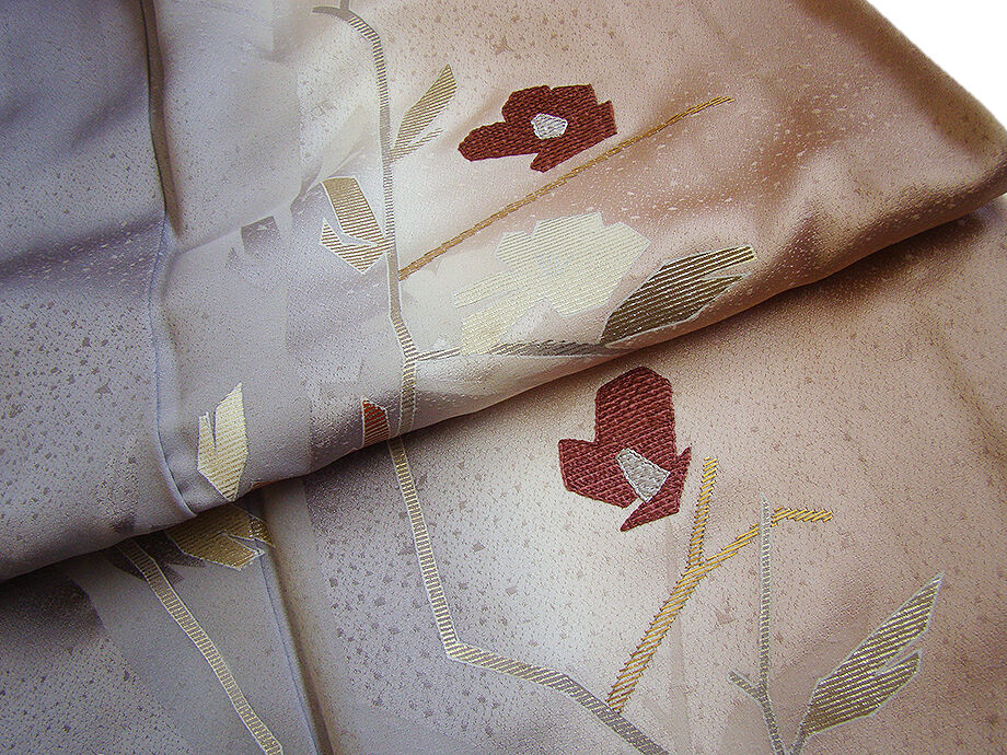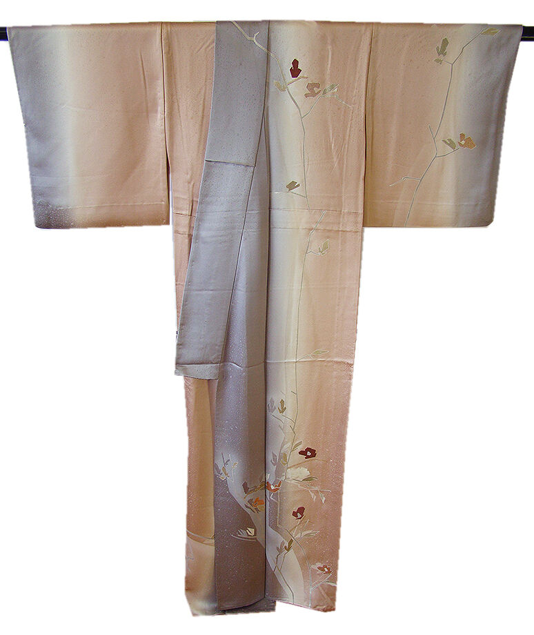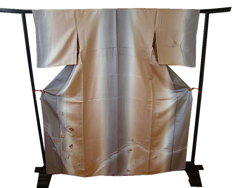 | 商品説明 | こちらのお品は「単衣」ですので5月、6月、9月にお召頂ければと思います。 着物には、大きく分けて「袷(あわせ)の着物」と「単衣(ひとえ)の着物」と「夏着物」があります。 反物(表地)を着物に仕立てるときに、裏地類をつけるものを袷の着物、 つけないものを単衣の着物と呼び、胴裏や八掛といった裏地がつかない一枚ものの着物です。 また裏地がないため、座る時などにヒップのラインが目立たないよう、 居敷当て(いしきあて)の生地をつけることもあります。 正絹の居敷当てが付いております。 とてもしなやかなさらりとした手触りの着心地良い綸子地の生地は 涼やかで着心地の良いものです。 渋い水柿色地に桔梗鼠色ぼかしに花木柄の金彩加工染に刺繍入りとなっております。 |