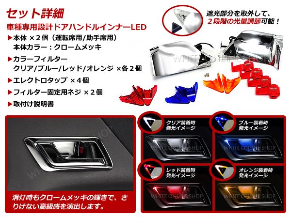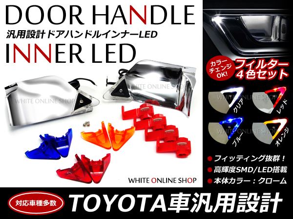 トヨタ汎用 サイドドアハンドル LEDイルミネーション クリア/ブルー/レッド/オレンジ 4色切替可能 收藏
