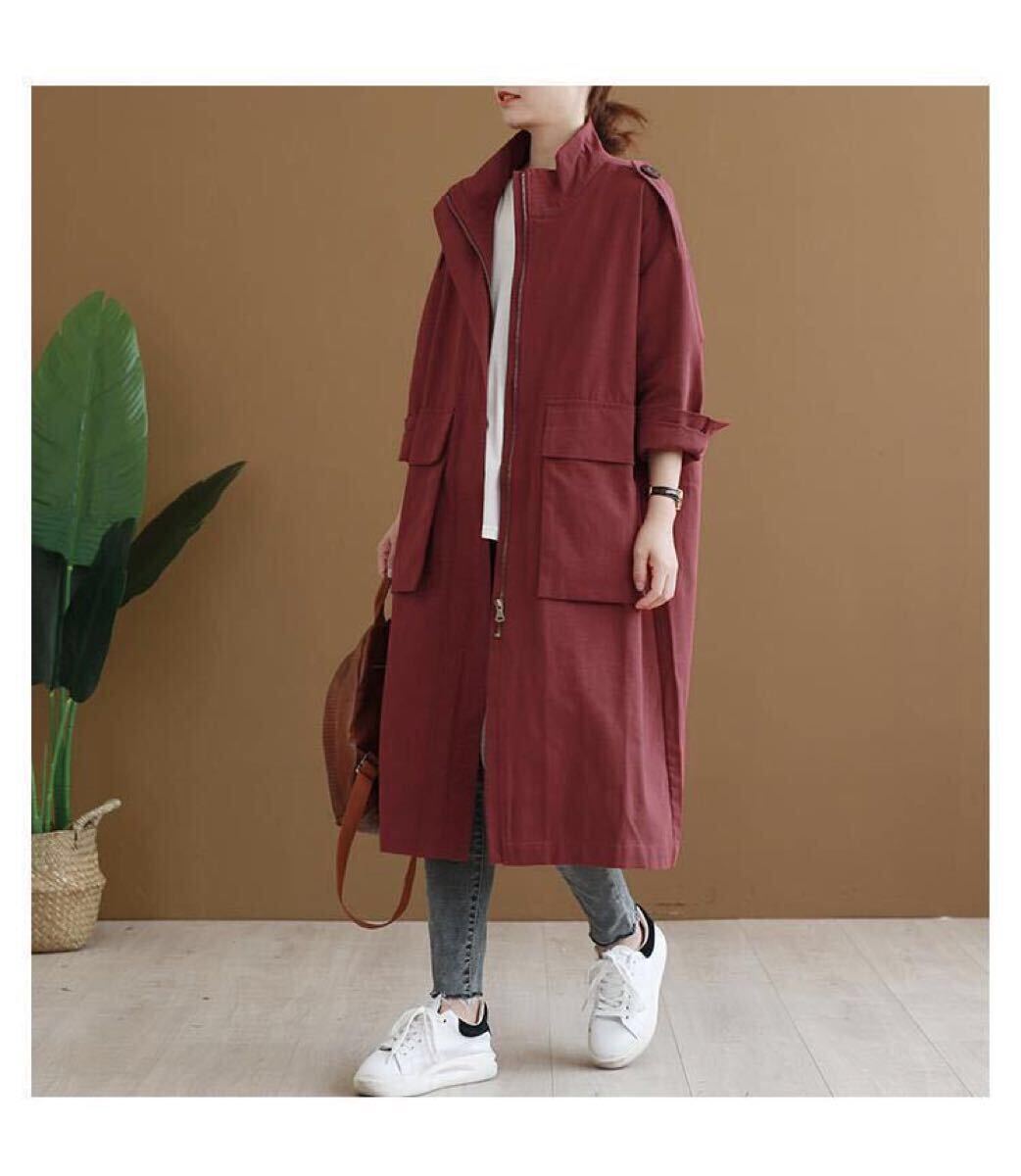 レディース ロングコート ワーク トレンチコート パーカー 春秋 ゆったり 大きいサイズ カジュアル LCDA147(2色フリー) 收藏