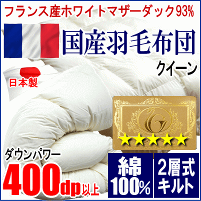 羽毛布団 クイーン フランス産ホワイトマザーダックダウン 93% ロイヤルゴールラベル 二層キルト ツインキルト 超長綿 綿100% 日本製 收藏