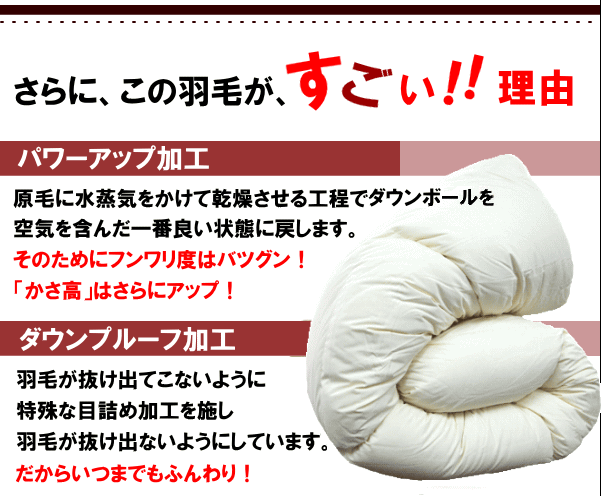 ■仕様:ロイヤルゴールドラベル、ダウンパワー400dp以上