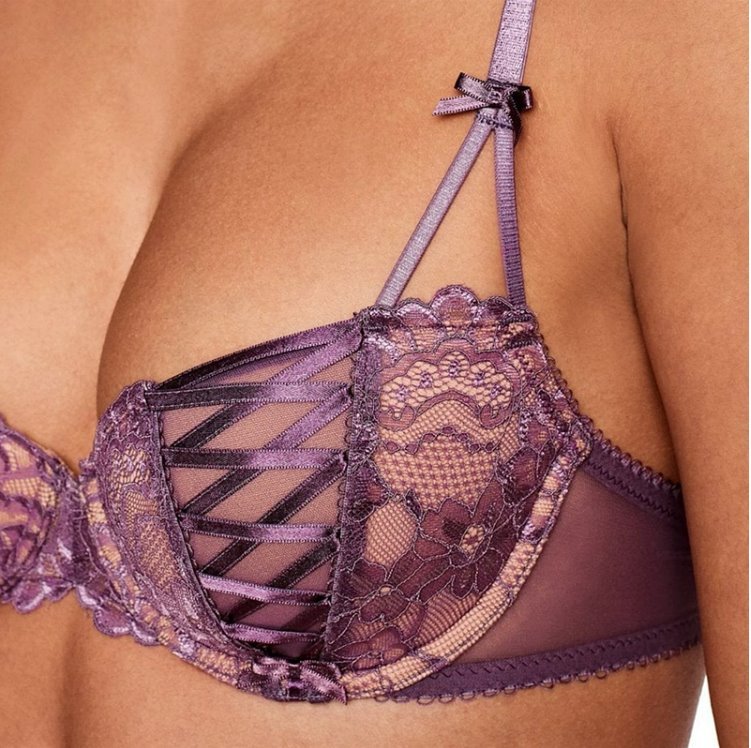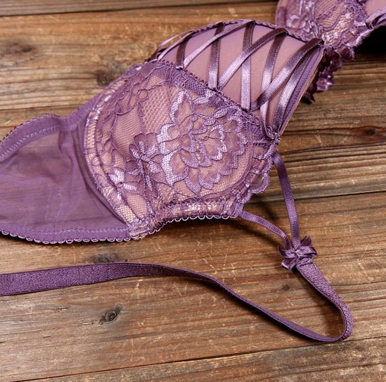 *:.G85 欧米 ADOREME 3/4カップ* 美品* クロスリボン 豪華レース* *sexy* 心地よい 高級補正 ブラジャー* パープル 收藏