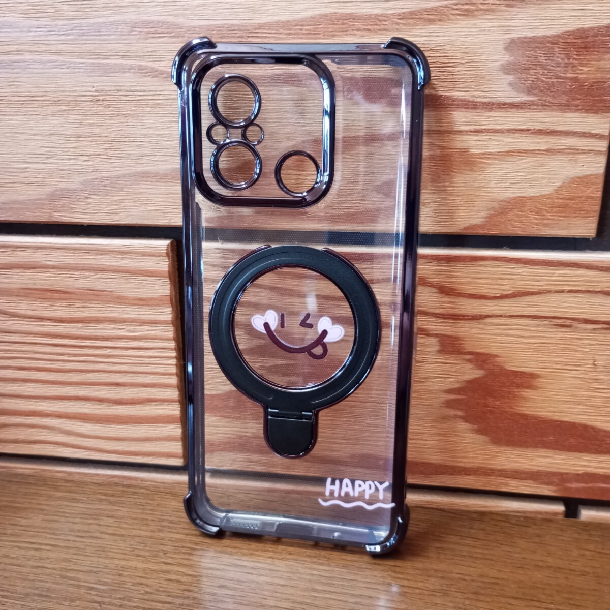 #説明文必読!! Xiaomi Redmi 12C ニコちゃんマーク 可愛い ケース クリア×ブラック シリコン レドミ スマホカバー シャオミ 收藏
