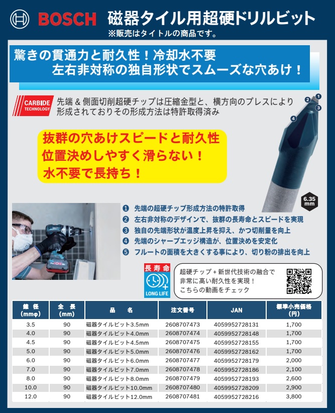 (ボッシュ) 2608707476 磁器タイルドリルビット5.0mm 錐径5.0mmφ 全長90mm BOSCH ネコポス可 收藏