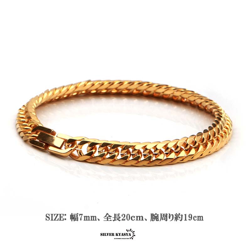 ゴールド チェーンブレスレット 6面カット ダブル喜平チェーンブレスレット 幅7mmブレスレット ステンレス 18KGP 金 收藏