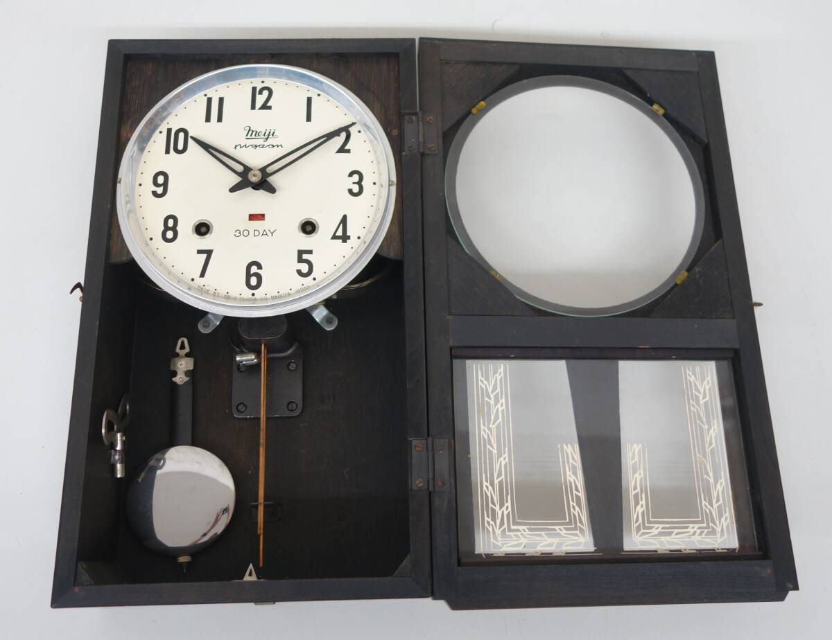 レトロ アンティーク 時代 昭和レトロ 当時物*meiji 明治時計 MEIJI CLOCK.CO *30DAY 掛時計 柱時計 ボンボン時計*MODEL 516 收藏