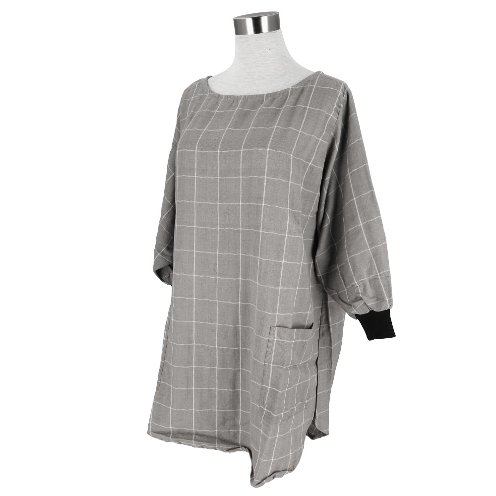 ☆ グリッド/グレイ ☆ 花びらリブ袖かっぽうぎ フレンズヒル 割烹着 割ぽう着 かっぽうぎ キッチンエプロン エプロン スモック かっぽう着 收藏