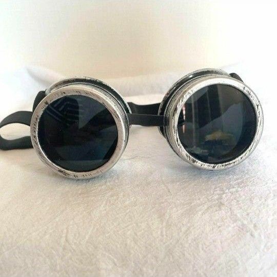 ヴィンテージ加工されたフレームと、重厚感のあるレンズデザインが目を引くスチームパンク風ゴーグルです。