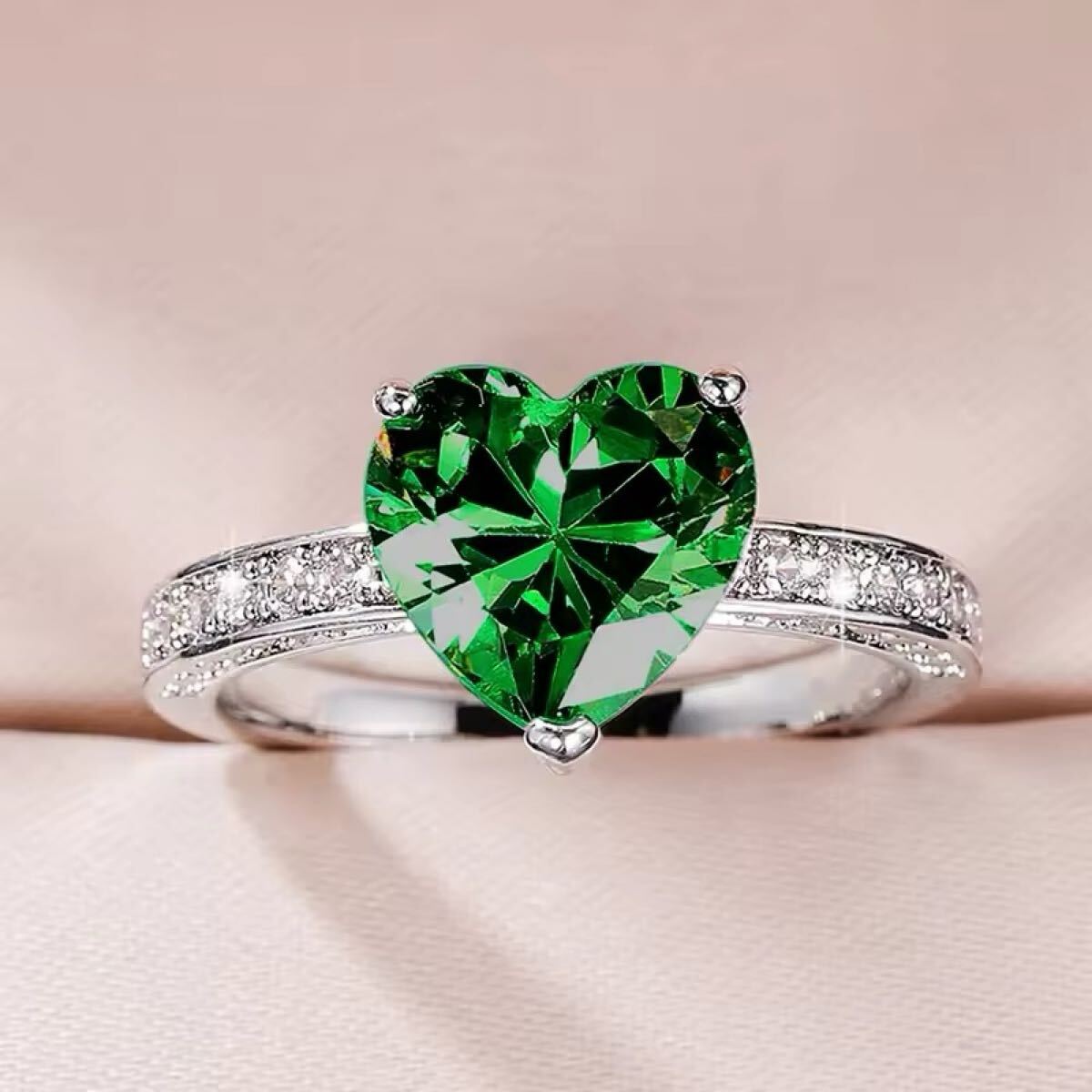 1円 大目玉セール 装飾指輪 リング Czダイヤ アンティーク メンズ レディース ジュエリー エメラルド グリーン シルバー クリスタル ハート 收藏
