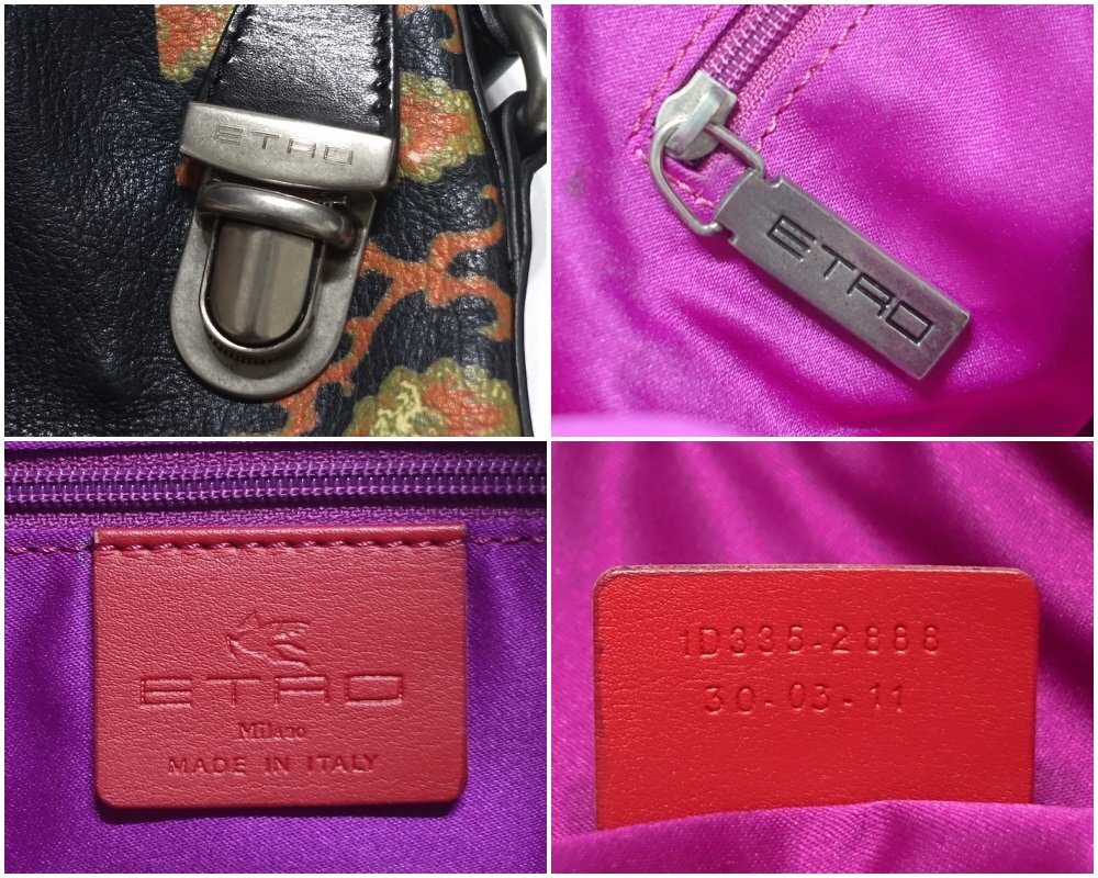 美品 ETRO エトロ ペイズリー柄 ワンショルダーバッグ バケットバッグ 1D335 レザー マルチカラー×ブラック レディース 收藏