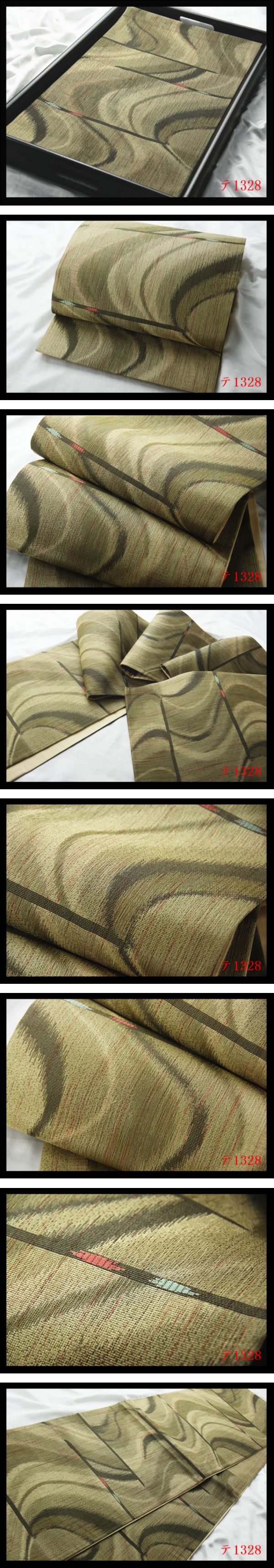 蔵【テ1328】西陣逸品 柳茶色地 気品豊かに 正絹六通高級美術袋帯 ◇検◇簪着物名古屋帯和装小物帯締め 收藏