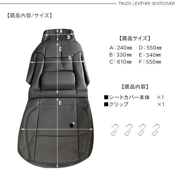 トラック シートカバー 2t 4t 10t 大型車対応 レザー仕様 汎用タイプ ブラック トラック用品 部品 内装パーツ