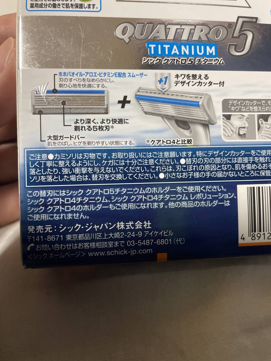 シッククアトロ5 チタニウム schick QUATOR5 TITANIUM クラブパック替刃の、バラ売りになります。
