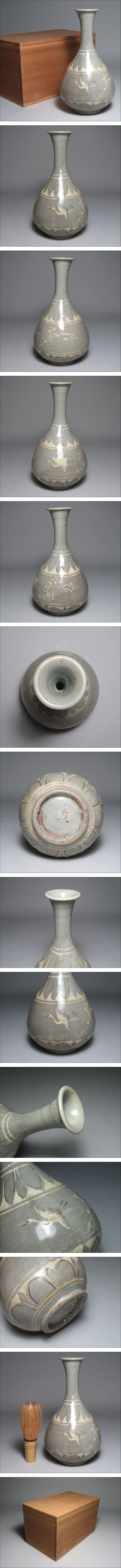 【李朝/高麗 特集出品】高麗青磁象嵌鶴文瓶 朝鮮古陶磁器/李朝時代 朝鮮美術 | ||