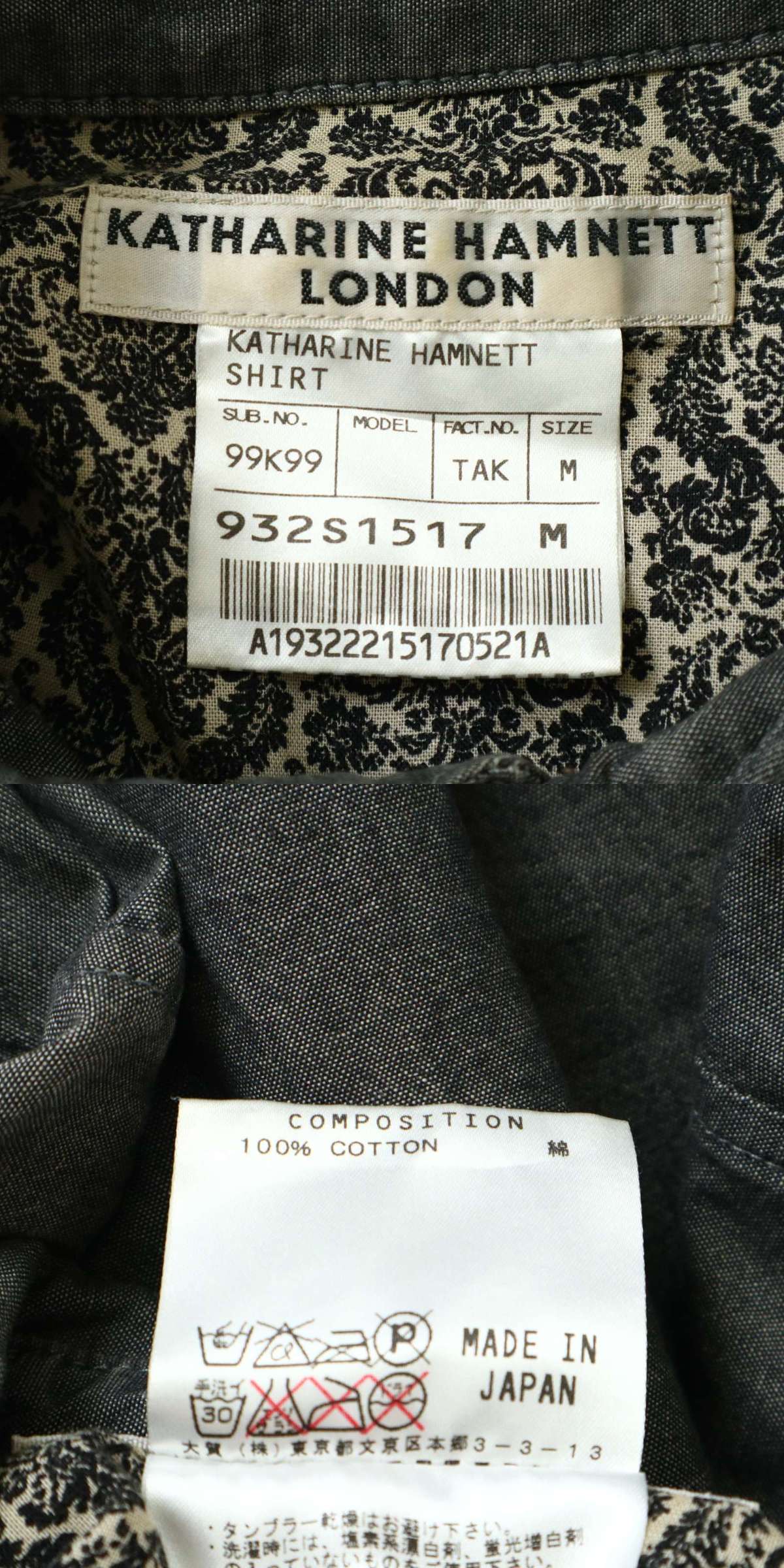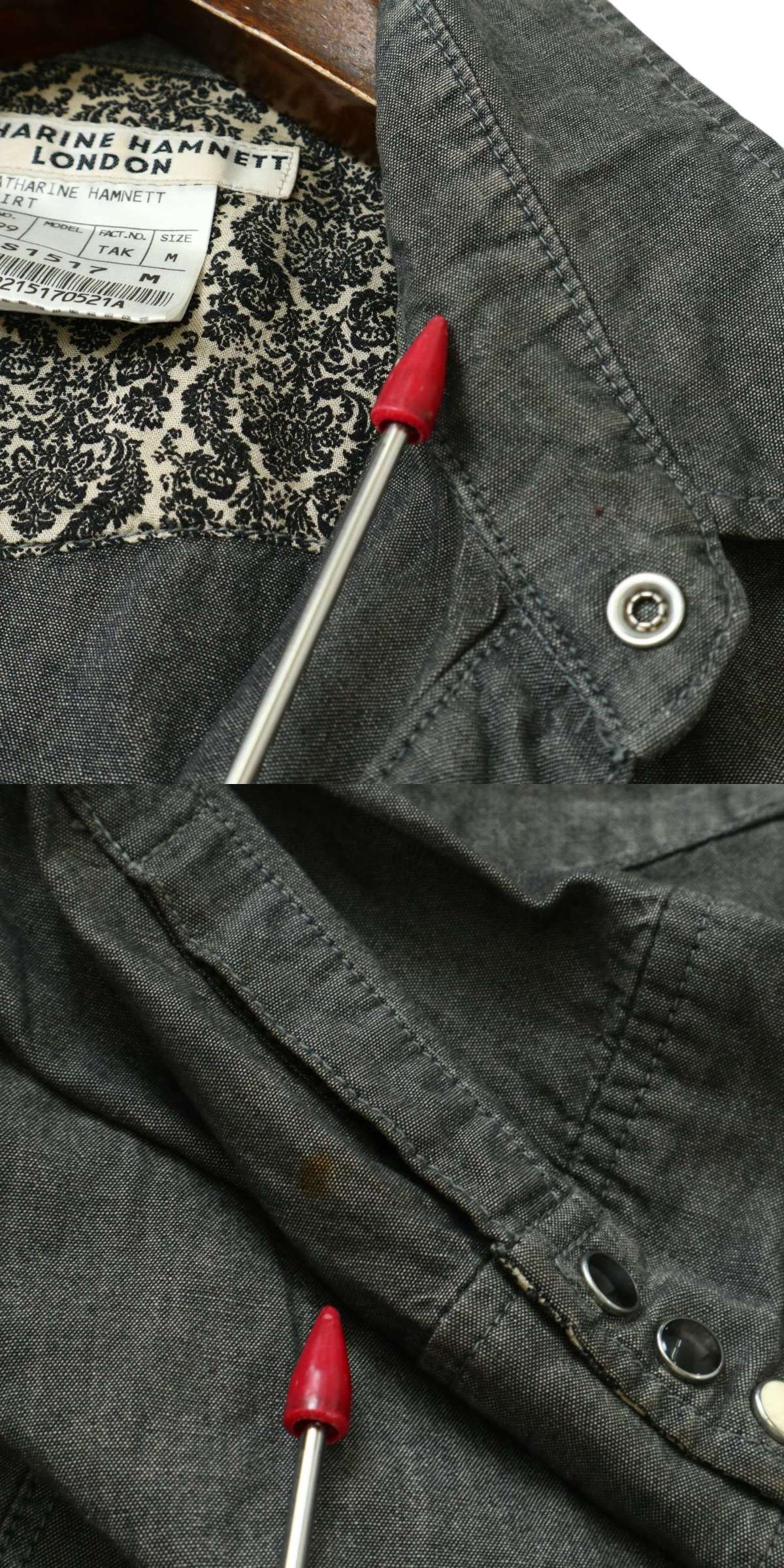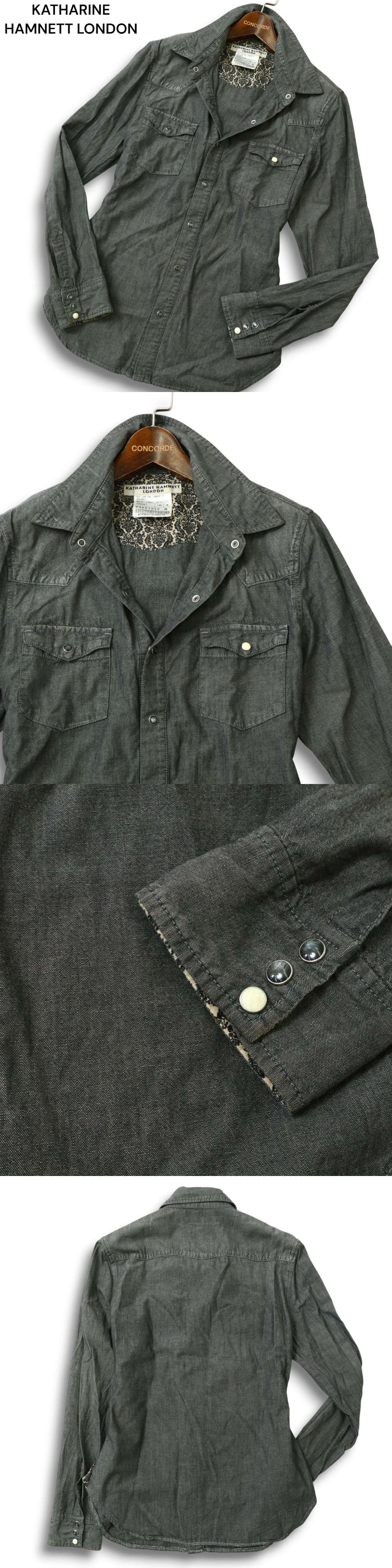 KATHARINE HAMNETT LONDON キャサリン ハムネット シャンブレー★ 長袖 ウエスタン シャツ Sz.M メンズ 灰 グレー 日本製 收藏