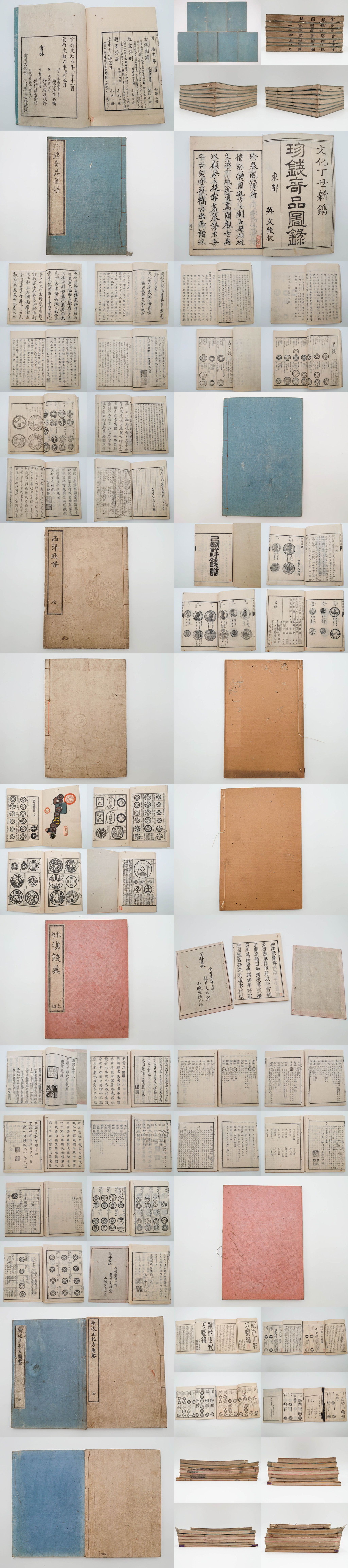 R-083905 江戸~明治期 校正古銭鑑大成 金銀図録7冊揃 珍銭奇品図録 西洋銭譜 古銭価格図鑑 新校正孔方図鑑2冊 和漢銭彙 和本14冊(木版画) 收藏