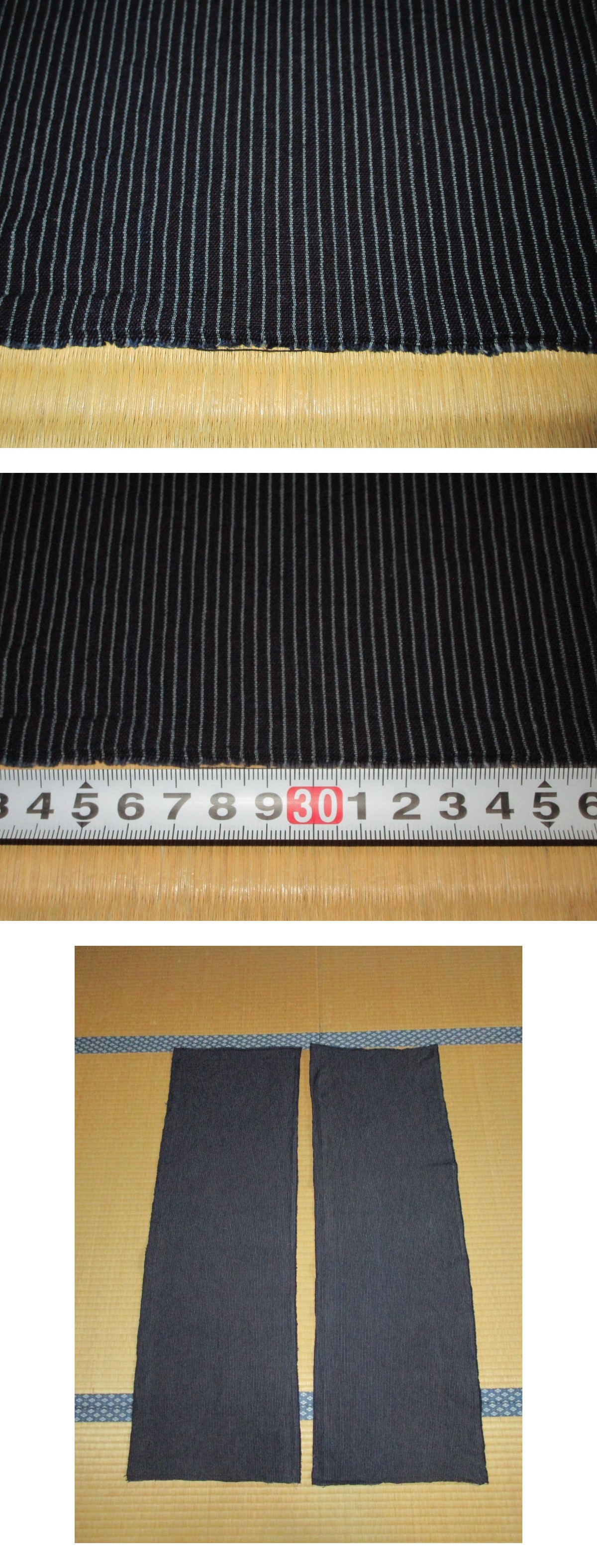 【昔古布】大正期 無傷で 美品 厚手の 藍染木綿 細縞 2幅 (長合計218) リメイク材料 收藏