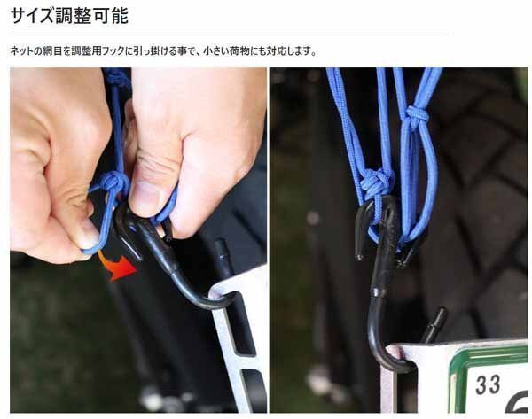 最強フックと、大幅伸縮ゴムでガッチリ荷物をホールド